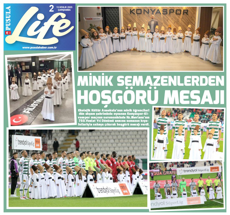 Ekolojik kültür anaokulu'nun minik öğrencileri dün akşam şehrimizde oynanan Konyaspor-Sivasspor maçının seromonisinde Hz. Mevlana'nın 750. Vuslat Yıl dönümü anısına semazen kıyafetleriyle sahaya çıkarak hoşgörü mesajı verdi.